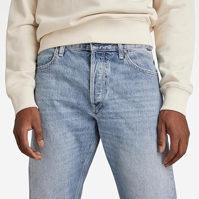 ストレートフィット:標準ウエストバンド付きハイライズ、太ももから裾までまっすぐ、補強されたボトムのスクエアバックポケット、リベットで補強されたコーナー付きのフロントウェルトポケット2つ、ボタンフライ、バックウエストに牛革G-Starラベル。