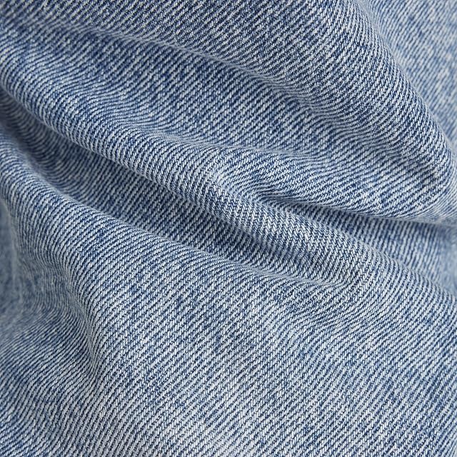 Antique Worker Denim Organic: 3x1右綾織りのツイルをブルーグレーがかった色目で染め上げたオーガニックコットン製のデニム。伸縮素材を僅かにプラスすることで真のデニムの風格をキープしながら快適な穿き心地を実現しています。オーガニックコットンにリサイクルポリエステルとエラステン(Lycra 166L)を混紡したサステナブルな素材。Archroma社の液体硫黄染料で染め上げることで、サステナブルな特殊な色彩を帯びたグレーがかったブルーの色調を生み出しています。 ・3x1 右綾織り