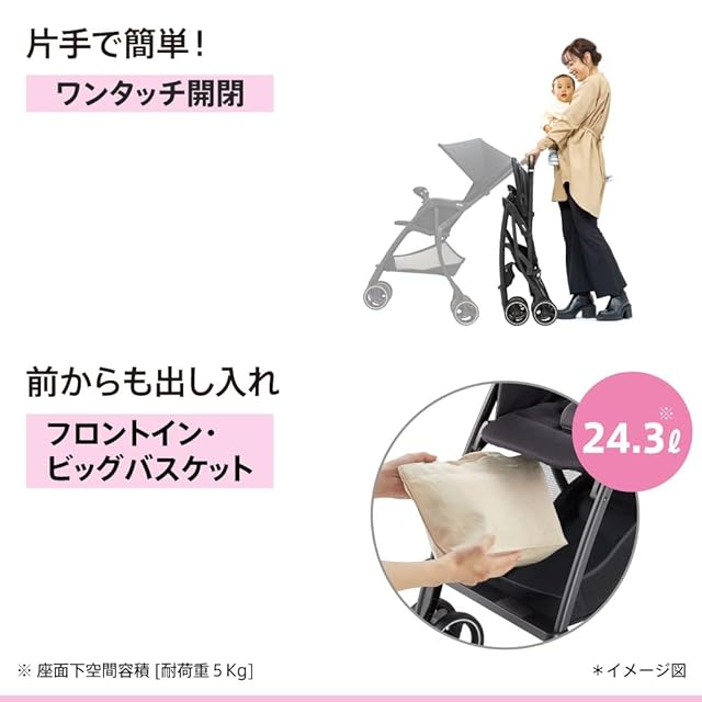 【パッと閉じて、ラクラク持ち運び】軽量3.3kg。片手ワンタッチ開閉。生後7か月から使えるB形ベビーカー。