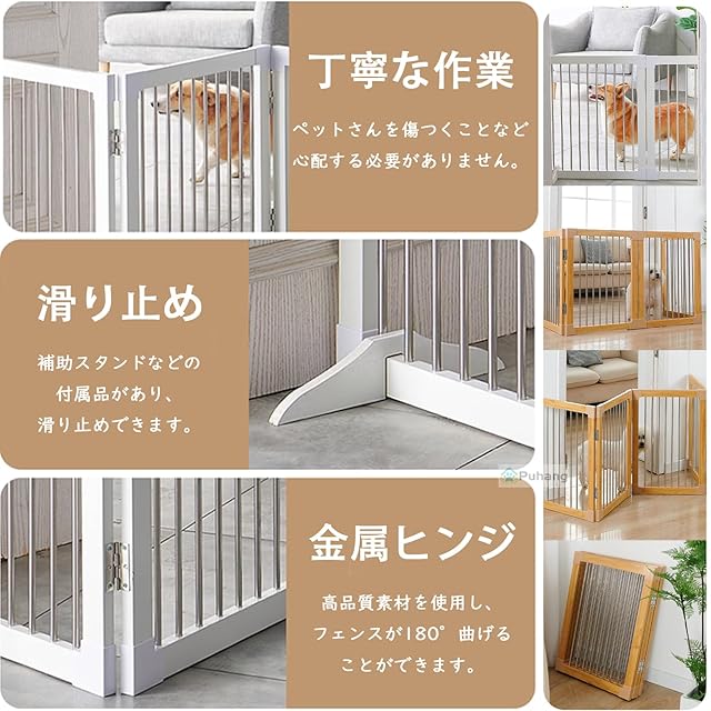 【サイズと適用対象】高さ70cm、長さ210cm、4つのパネル。重さ:約10KG。本品は多サイズが選択でき、中小型ペットに対応し、中小型犬などの動物に使用できます。ペットが危険な部屋への侵入を防ぎ、脱走防止や階段からの転落を防止し、ペットにも飼い主さんにもプライベートな雰囲気を与えます。