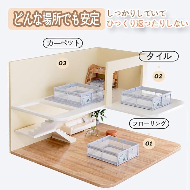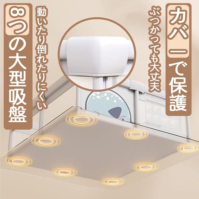 【どこでも使える】この製品は屋内外どちらでも使用できます。しっかりした吸盤設計があらゆる地面に適応し、また、保護と通気性の特性を備えているため、家で遊んだり外で遊んだりする際に最適です。赤ちゃんの成長と活発な遊びに対応します。注意:写真は商品の使用イメージです。ボール・おもちゃは商品に含まれません。