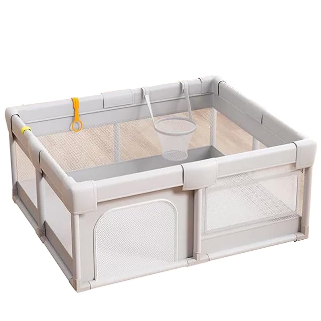 Yangweng ベビーサークル ベビーフェンス 滑り止め吸盤付き バスケット付き ドアロック付き 大型 外側ロック 扉付き 吊り輪付き カバー付 室内外対応 ファスナー開閉扉 多機能 キッズランド ベビーゲート プレイヤード キッズパーテーション 子供ゲート 洗濯可能 ベビー 子供 出産祝い(グレー 160*180*65CM) | ascend