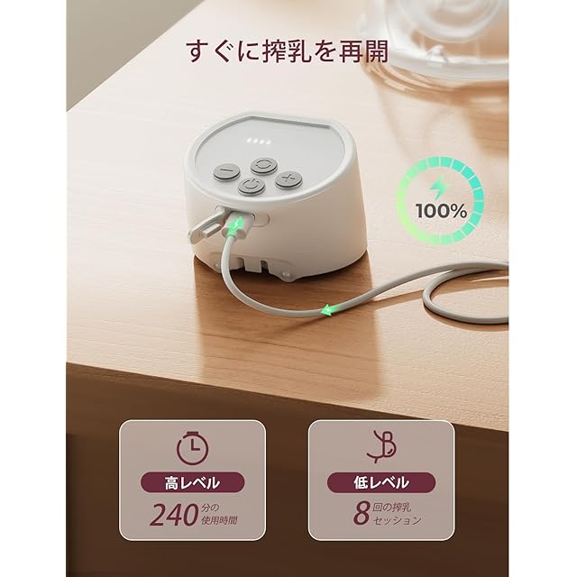 安心して使用‐1回のフル充電(約130分)で7~8回(合計240分)の搾乳が可能なので、丸1日の外出にも対応できます。BPAフリーの食品グレードシリコン製で、あなたと赤ちゃんのどちらにとっても安全です