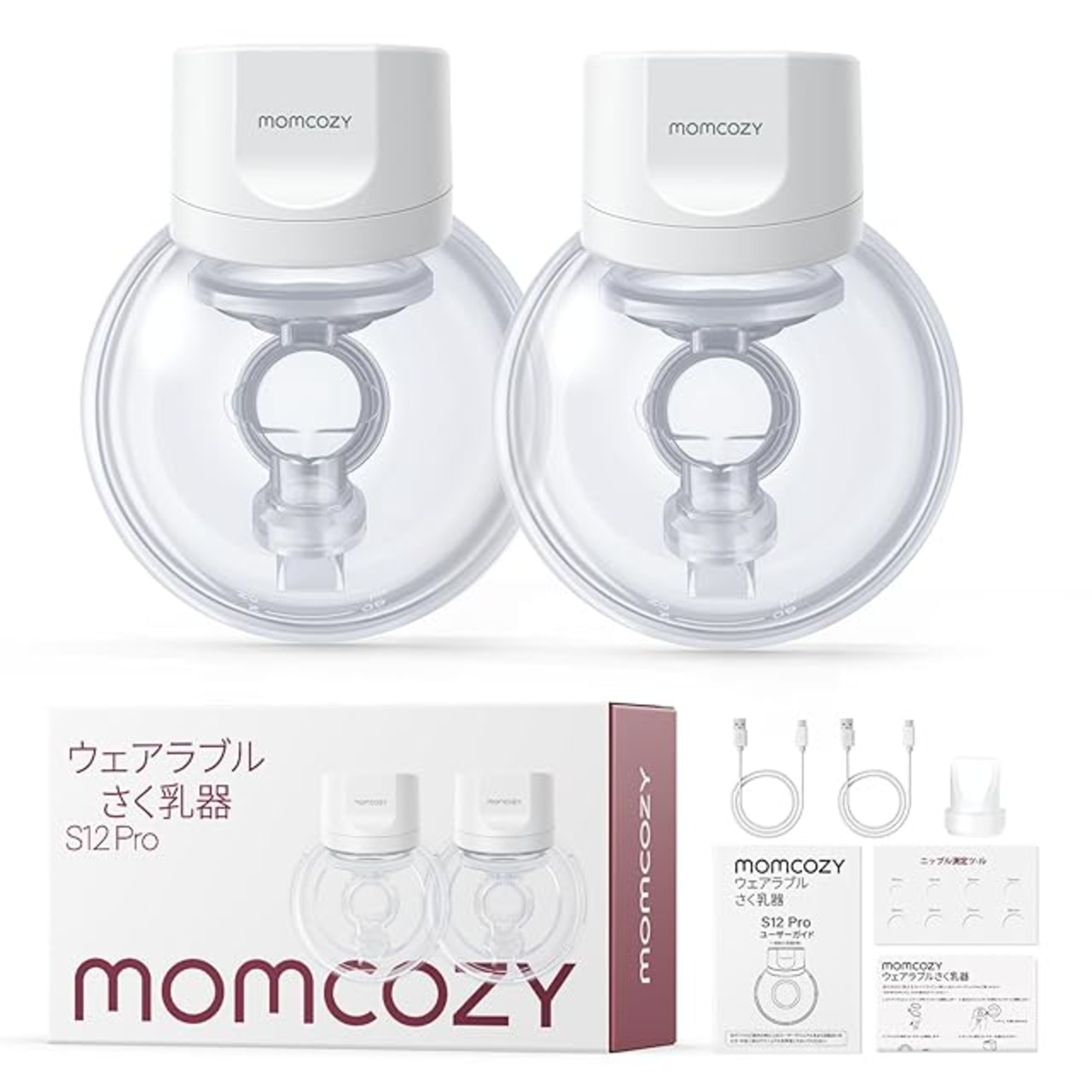 Momcozy S12 Pro ハンズフリー電動搾乳機、着用式ワイヤレス搾乳機、快適なダブル密封フランジ付き、3つのモードと9段階の調節が可能、ポータブル電動搾乳機、24mm、2個セット、ホワイト | ascend