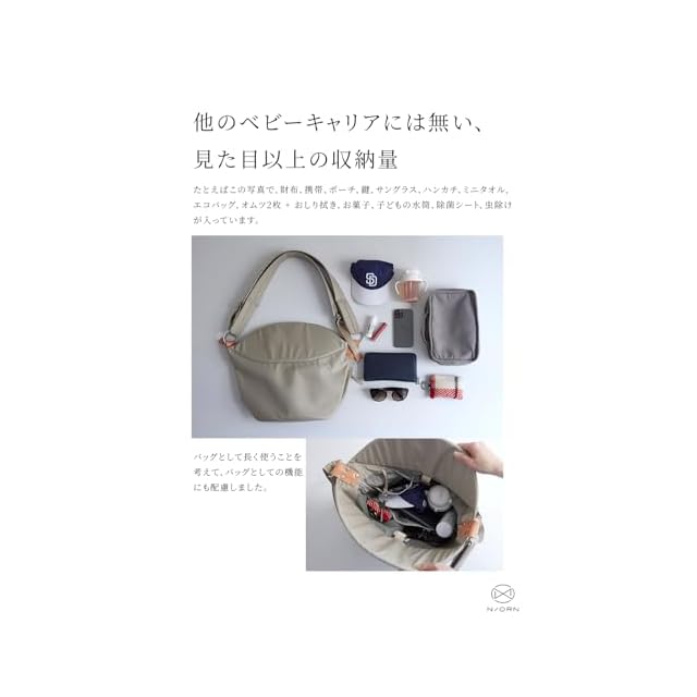 N/ORN(ノルン)は腰がしっかりすわったあと・また歩き始めて少し大きくなったお子様をさっと乗せ降ろし、抱っこできるバッグです。
