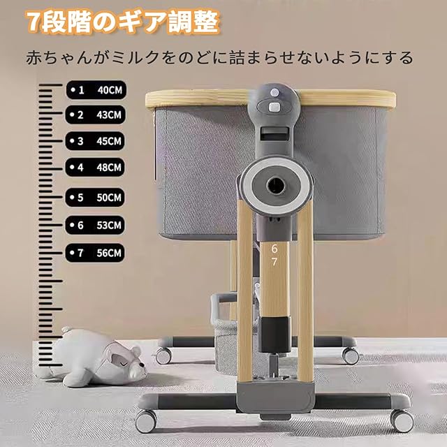【7段高さ調整】7段階調節で、ハイベッドもローベッドも自由に組み合わせられる、使用シーンに合わせて高さを自由に調整できる。高さを調節できるので、腰に負担をかけずにおむつ替えができる。底部には収納バスケットがあり、ベビー服、哺乳瓶、おもちゃ、おむつなどを収納できます。