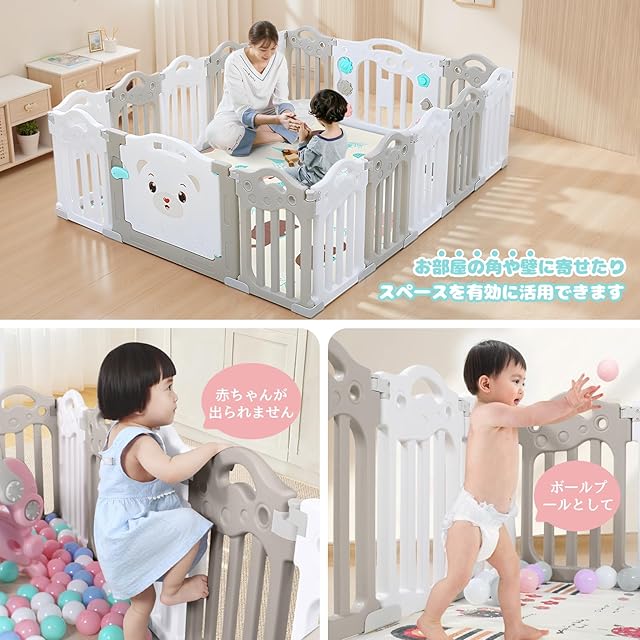 SPIEEK ベビーサークル 折りたたみ 人気 大きめ ベビーフェンス 赤ちゃん サークル 子供用 赤ちゃん柵 室内遊具 おもちゃ 扉付き 16枚セット 出産祝い プレゼント(外寸188cmx151cmx60cm)【ホワイト×グレー】 | ascend