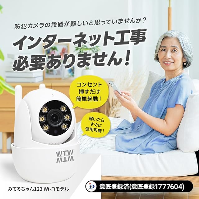 WTW塚本無線 防犯カメラ みてるちゃん123 Wi-Fi 屋外 屋内 見守りカメラ ペットカメラ ベビー ワイヤレス 夜間撮影 パンチルト SDカード スマホで監視 意匠登録済 WTW-W2858Y