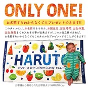 お子様の『お名前』『お誕生日』『出生時間』『出生体重』『出生身長』がデザインプリントされた世界で一枚のタオルが作れる【お仕立券】です。(赤ちゃんのお写真はプリントできません)