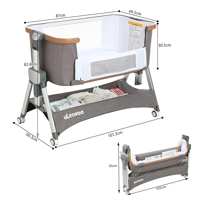 UBRAVOO 2024新型 ベビーベッド 添い寝 折りたたみ 組み立て不要 添い寝ベッド 睡吐防止 高さ5段調節可能 コンパクト 通気性 収納便利 収納かご・マットレス・固定ベルト キャスタ付き 新生児ベッド 乳児用ベッド 赤ちゃんベッド 出産祝い プレゼント 0ヶ月~24ヶ月