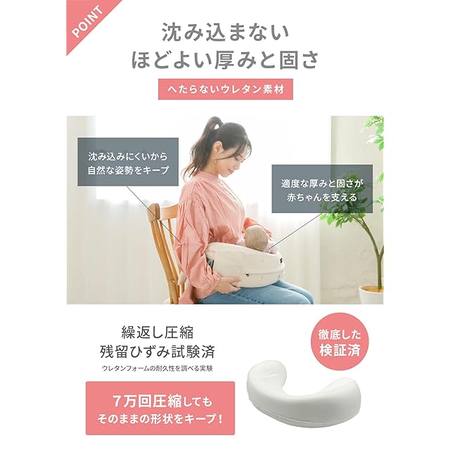 ✅【しっかり支える固さと高さ】充分な厚みと適度な固さで赤ちゃんをしっかり支え、自然な姿勢をサポートします。また、ウレタンファームの耐久性を調べる実験で7万回の圧縮テストをクリアし、形状を保つ信頼の品質で、長く安心してお使いいただけます。