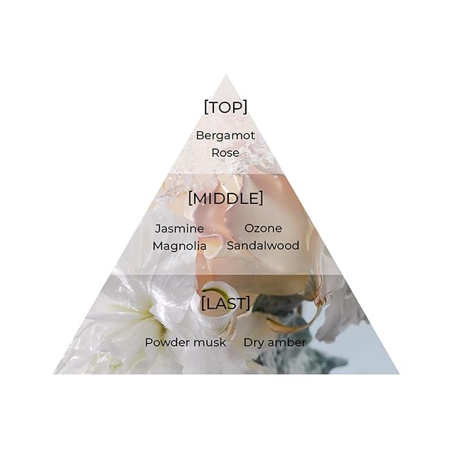 【トップ】: ベルガモット,ローズ【ミドル】: ジャスミン,マグノリア,オゾン,サンダルウッド【ラスト】: パウダリームスク,ドライアンバー
