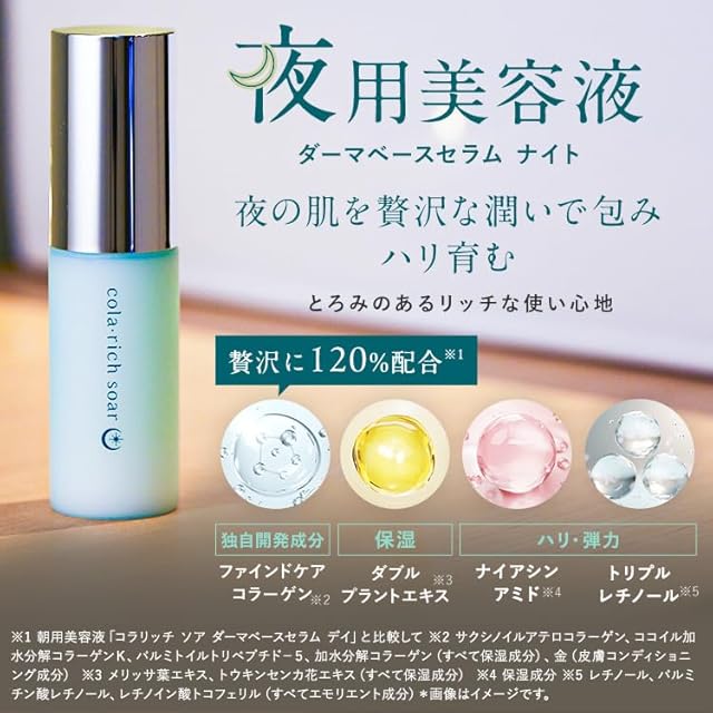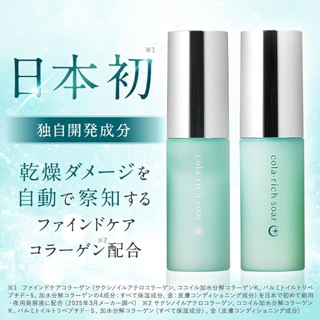 日本初※独自開発成分を配合。朝夜の肌悩みに合わせ、24時間コラーゲンケアのブランド コラリッチソア