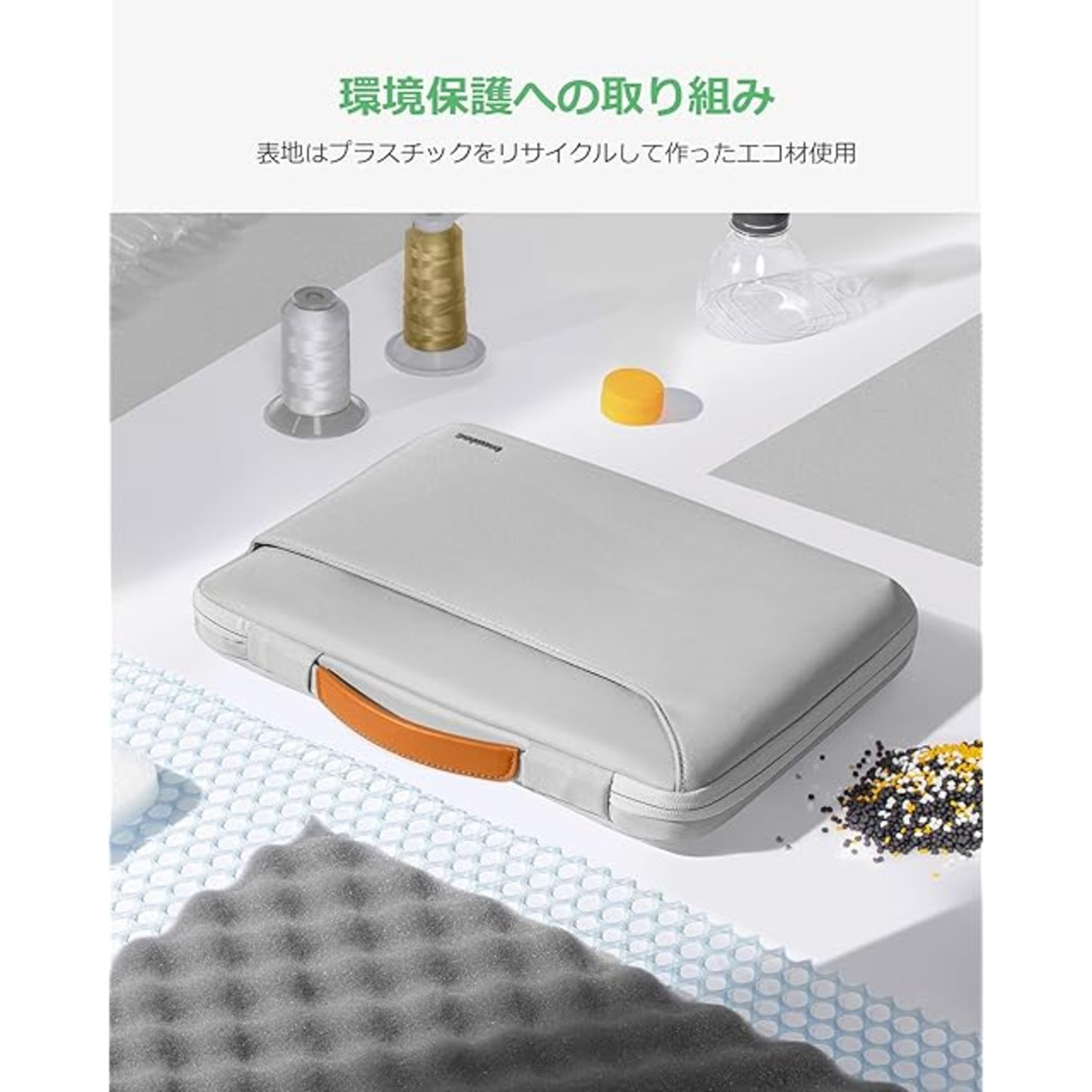 【充実な収納・持ち運びやすい】大きなフロントポケットが設けられ、アダプター、ケーブル、マウスなどのアクセサリーをまるごとに収納可能。その中に、ストラップが付き、AirTagと鍵を掛けられます。取っ手は耐久性に優れたPUレザーを使用、手触りがよく握りやすく持ち運びもしやすいです。