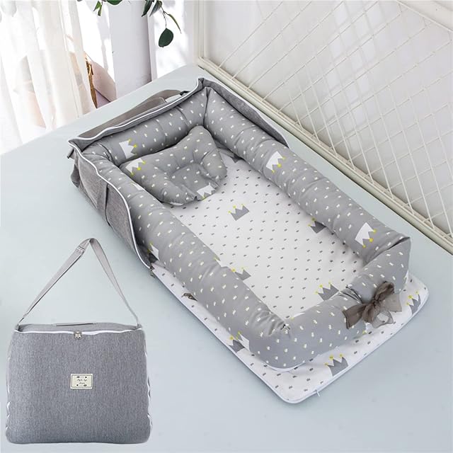 【思いやりのデザイン】ベビーベッドの後部に特別な紐のデザインがあって、おむつを交換する時に、紐を解けて、便利に交換できます。また、赤ちゃんの首の圧力を和らげるように、枕が付着されて、赤ちゃんがより快適に眠れるようにします。