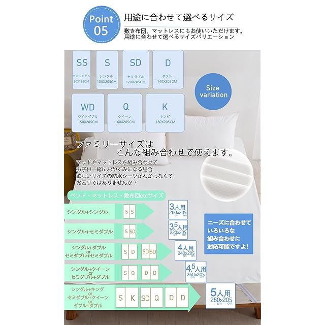 【サイズ】200x205cm(ワイドキング3人用、シングル2台用)【バンドタイプ】四隅にゴムバンド付きで寝返りでもずれにくく、敷き布団にも、マットレスにも着脱も簡単です。