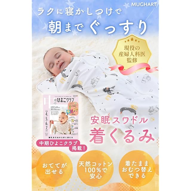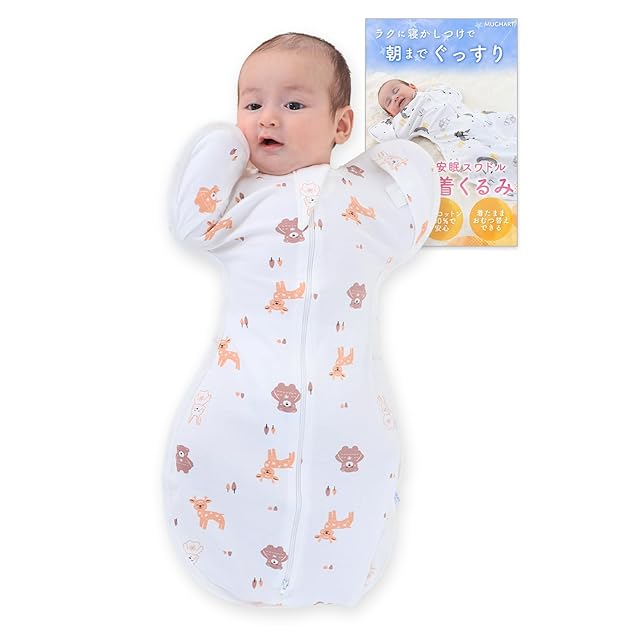【ひよこクラブ掲載x医師監修】 おくるみ スワドル 手が出せる 新生児【IHDI認証済み】モロー反射を防ぐ マグハート 着くるみ 夜泣き対策 天然コットン100% Mughart (森のどうぶつ, Sサイズ) | ascend