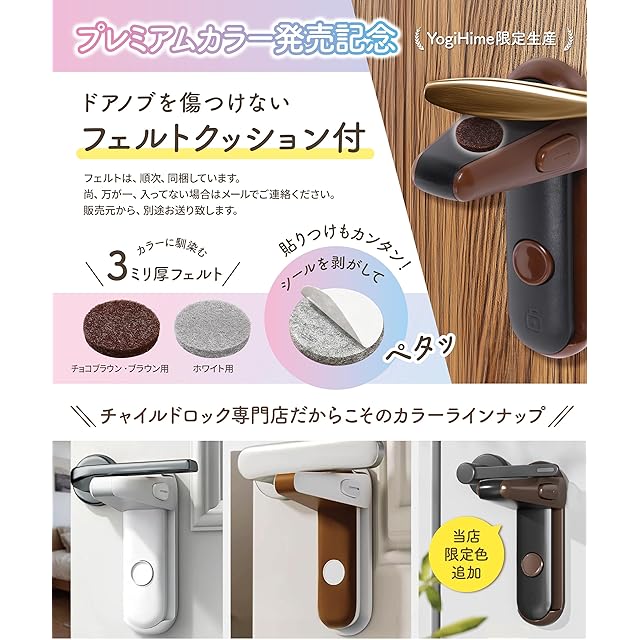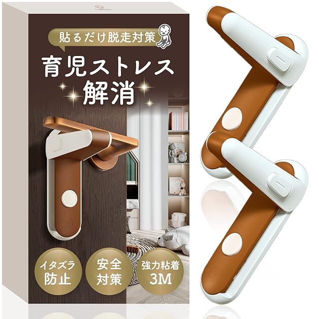 YogiHime ドアロック ドアノブロック 部屋鍵後付け チャイルドロック 【日本の専門ブランド】ドア ロック 赤ちゃん 鍵 後付け 部屋 猫 脱走防止 安全ロック いたずら防止 (フルカラー日本語取り扱い説明書付き) (ブラウン2個) | ascend