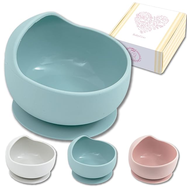 BabyGooⓇ ベビー食器 ボウル ひっくり返らない 食品衛生検査済み 赤ちゃん 離乳食 食器 吸盤 すくいやすい シリコン くっつく お皿 赤ちゃん 人気 出産祝い (ペールブルー, ボウル単品) | ascend