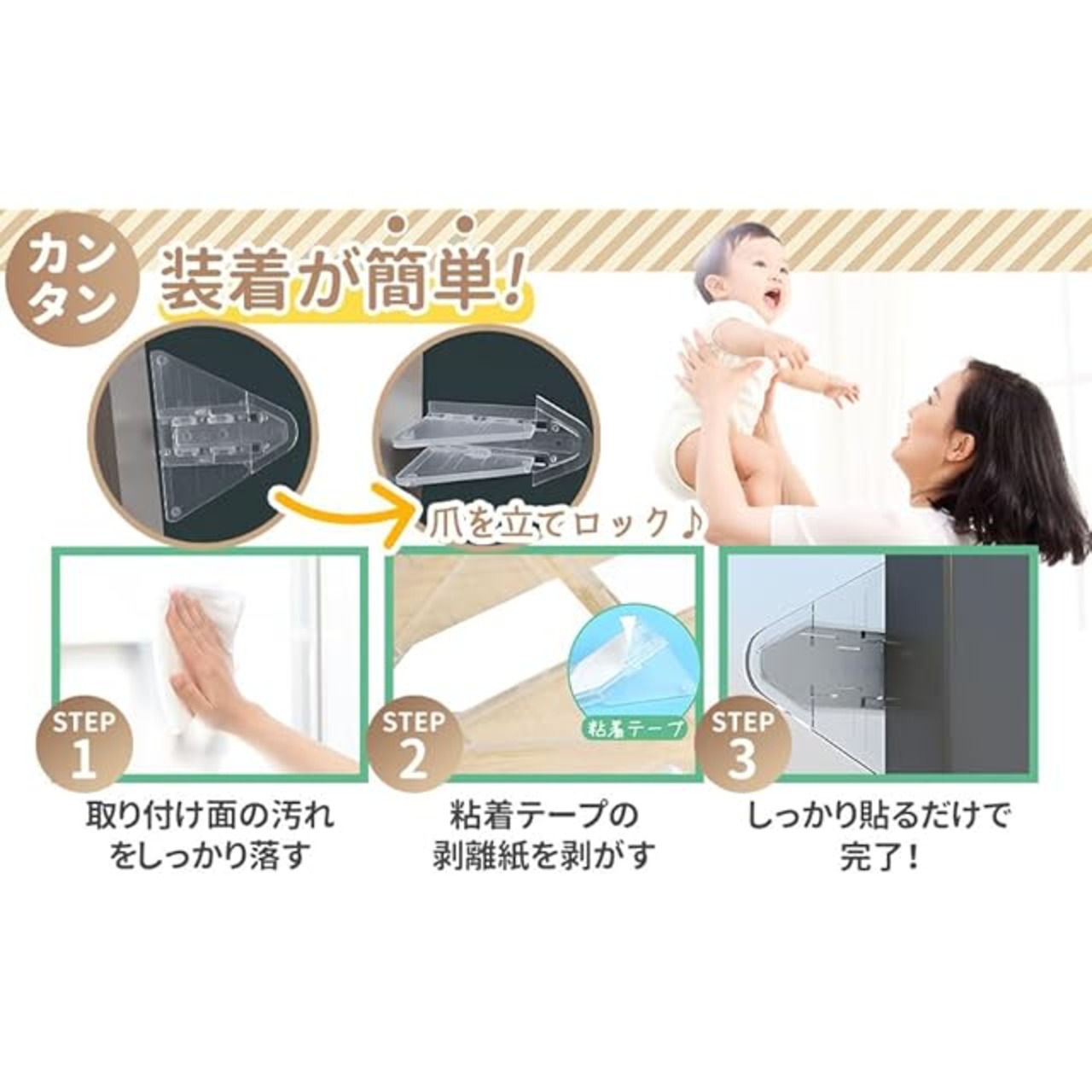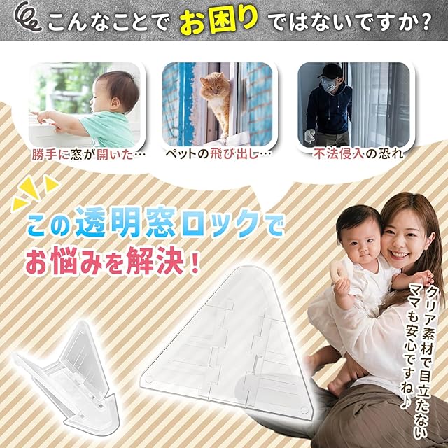 『ワンタッチで取付簡単』ワンタッチで簡単に固定できます!面倒な工具などは一切不要で、剥がして取り付けるだけで利用でき、ねじの調整は不要です。窓ストッパーの取り付け面に40秒ほどしっかり押してください。取り付けた後、24時間ほど放置してから使用してください。翼の部分を立てると戸をロックし、翼を閉じておけば通常通り戸を開閉できます。1つの窓や戸に2~3個取り付けておくと、より安全です。『特製強力テープ』優れた粘着力があるバックテープを使用し、しっかりと窓に粘着してくれます。取り外す際にヘアドライヤーの温風を10分ほど当て、定規などを使い少しずつ剥がします。家具を傷つけたり壊すことはありません。賃貸でも使用できます。