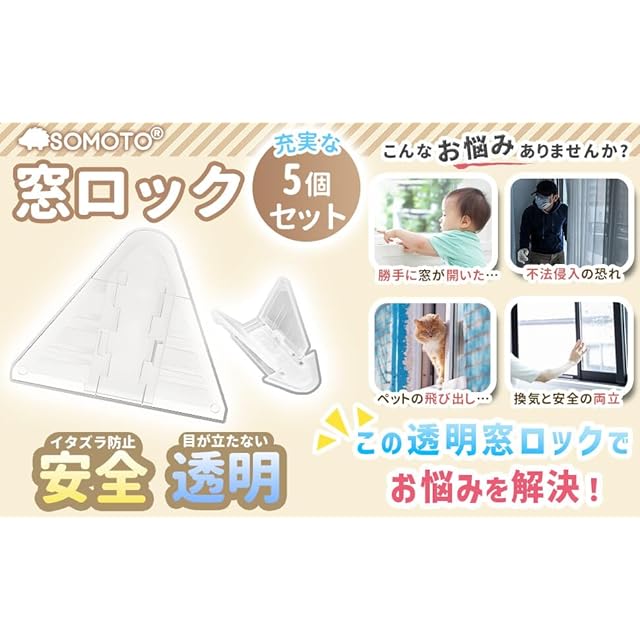 【保育士が監修】SOMOTO 窓 ロック 5個入 引き戸 ストッパー 窓ロック 窓ストッパー 転落防止 防犯対策 特製強力テープ 全透明 目立たないもっと安全 子供 赤ちゃん 猫 日本語説明書付き (全透明) | ascend