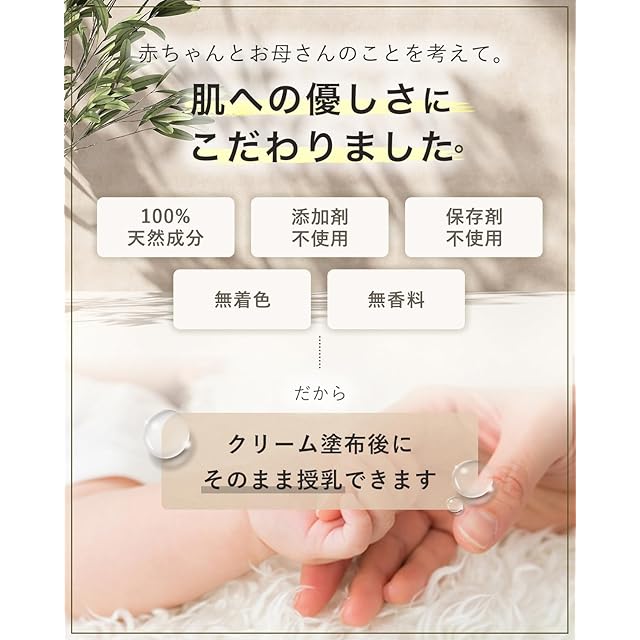【拭き取り不要でそのまま授乳】ラノリンは100%天然成分ですので授乳前に拭き取らずそのまま授乳できます。