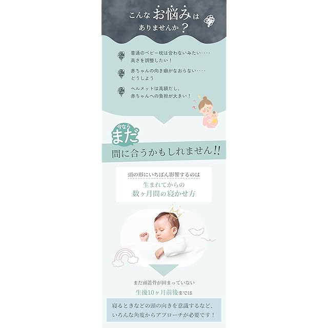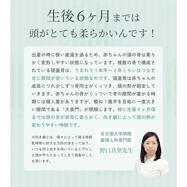 【頭の形を整える工夫された形状】 圧力を分散する特殊な形状で、赤ちゃんの頭の形 を整えます。赤ちゃんの絶壁防止に効果的です。
