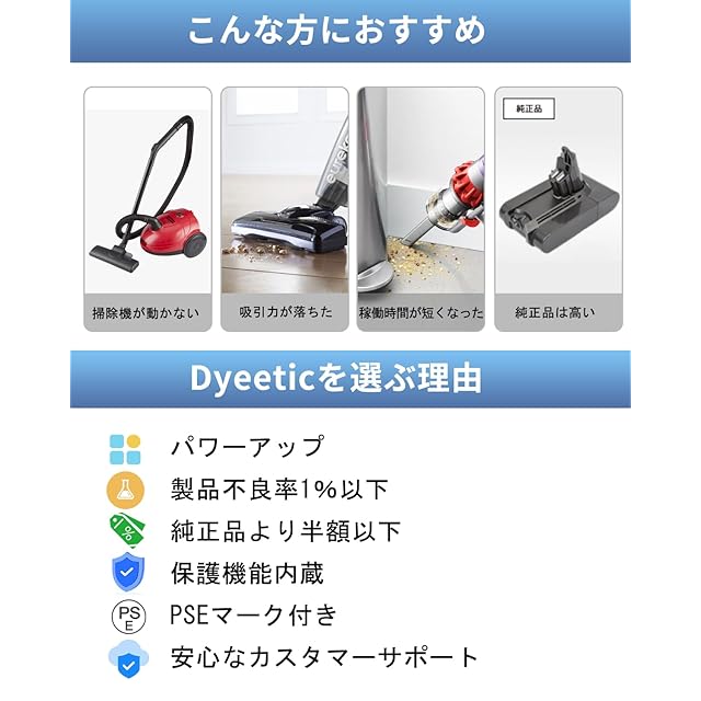 Dyeetic ダイソン バッテリー V6 交換 掃除機バッテリー DC62 DC61 HH08 DC72 DC74 SV09 SV08 SV07など対応 21.6v PSEマークあり フィルター付き 互換品 | ascend