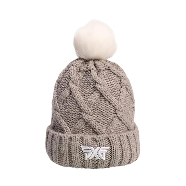 グレイのケーブルニットカフビーニー