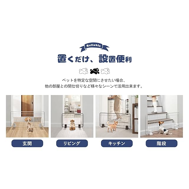 【置くだけ!設置便利】軽量で持ち運びに便利です。ペットの活動範囲に合わせて、自由に設置出来ます。台座も掴みやすく、滑り止めが付いていて、しっかり安定しています。 ※フェンスの両端を壁面に密着させて設置して下さい。