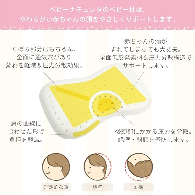 【助産師が推薦】ベビーナチュレタ ベビー枕 赤ちゃん枕 絶壁防止 向き癖 国内安全検査済み 絶壁 頭の形が良くなる 低反発 通気性 綿100% 洗える枕カバー2種類セット プレゼント ギフト 出産祝い | ascend