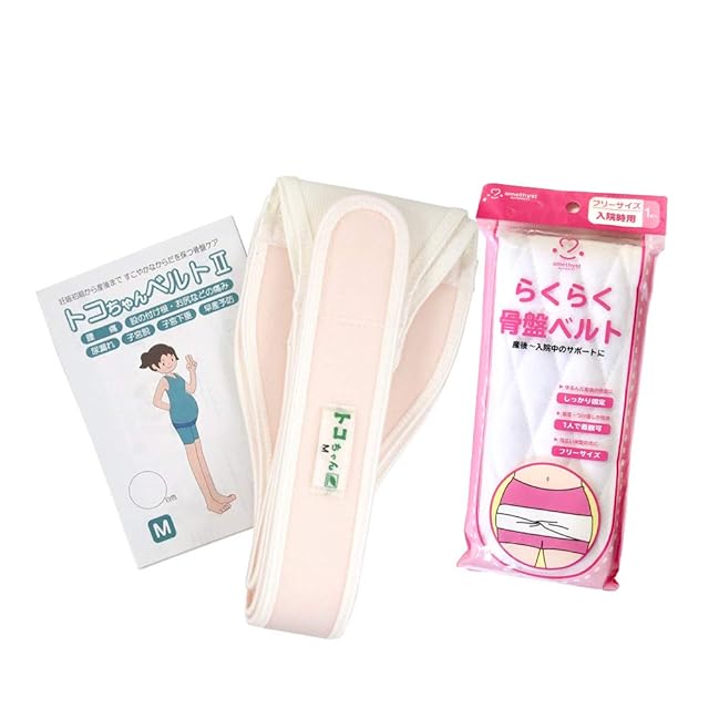 「らくらく骨盤ベルト」は分娩直後~退院までの骨盤ケアに! ベルトの両端にある面ファスナーで簡単に装着できます。