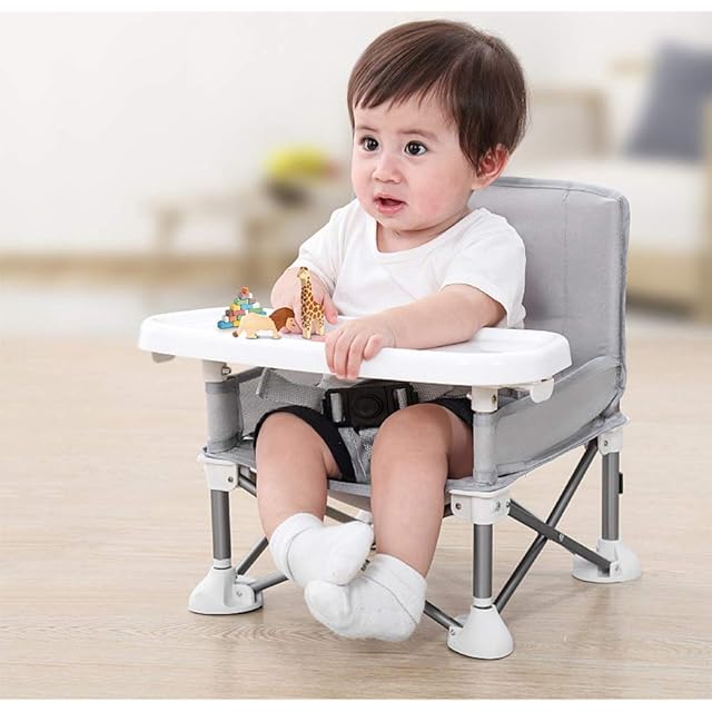 [HB.YE]ベビーチェア テーブルチェア 子供 赤ちゃん 携帯 ダイニングチェア 食事 椅子 子供 お食事椅子 折り畳み携帯ベビーシート 赤ちゃんストラップのデザイン アルミダイニングテーブルと椅子 6ヶ月から3歳まで 大容量収納袋 多機能チェア (グレー, 31 * 31 * 37cm) | ascend
