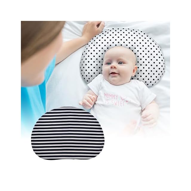ESMERALDA(エスメラルダ)新生児から使えるドーナツまくら パーソナルムーブベビー ベビーまくら エラストマーパイプ カバー取り外し可能 38 x 28 x 6.5 (ピュアホワイト・ストライプネイビー)