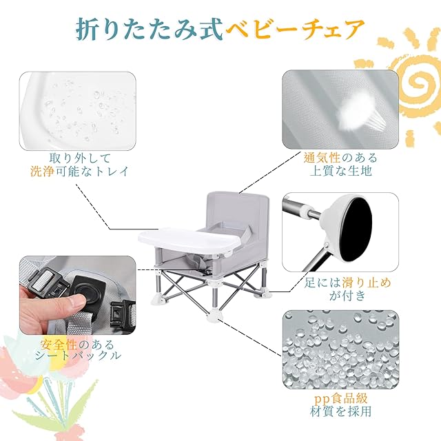 UBRAVOO ベビーチェア テーブルチェア 子供 赤ちゃん 収納袋付き 折り畳み 軽量 滑り止め 丈夫 安全ベルト 耐荷重15kg 折り畳み携帯ベビーシート キッズチェア ダイニングチェア お食事椅子 | ascend