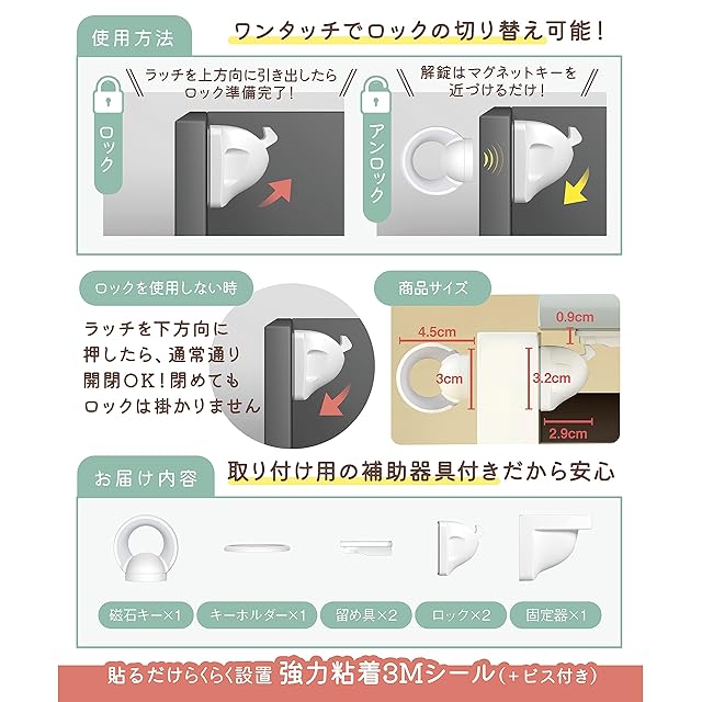 ✅【2023日本のチャイルドロック専門ブランドが開発】お客様の声をもとに持ちやすい【リング型マグネットキー】を開発。丸型に比べ、お子様の誤飲リスクも大幅軽減。【4センチの厚みを通す強力磁石】も併せて開発しました。