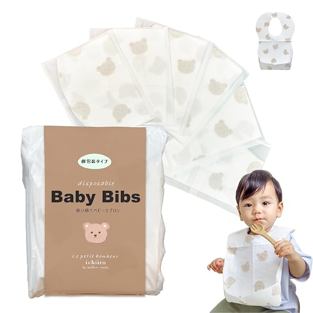 [ichiiro] 【現役ママ看護師推薦】 使い捨てエプロン お食事エプロン 100枚 [持ち運びに便利な個包装] スタイ くまさん柄 大きなくまさん柄 ベビーエプロン 赤ちゃんエプロン 紙エプロン (くまさん100枚) | ascend