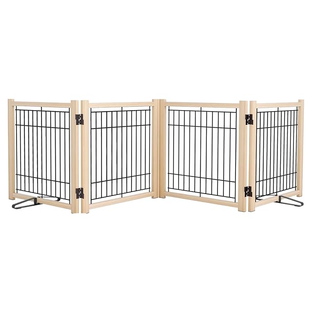 【ペットに優しい天然木】天然木で環境に優しいペットゲ-トです。柵の棒が鉄製で、デザインもシンプルなで、どんなお部屋にもマッチします。刺激的なにおいがなく、塗料なども使用していないので赤ちやんにとっても安全・安心です。ペットにもやさしい。