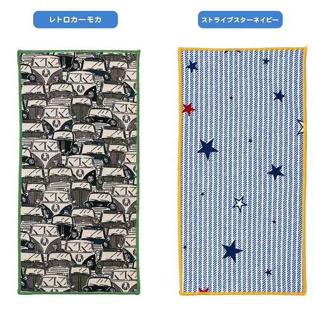 【キッズハーフハンカチ6枚/Y-レトロCarセット】レトロカーイエロー・レトロカーモカ・レトロカーブルー・ストライプスターブラック・ストライプスター水色・ストライプスターネイビー