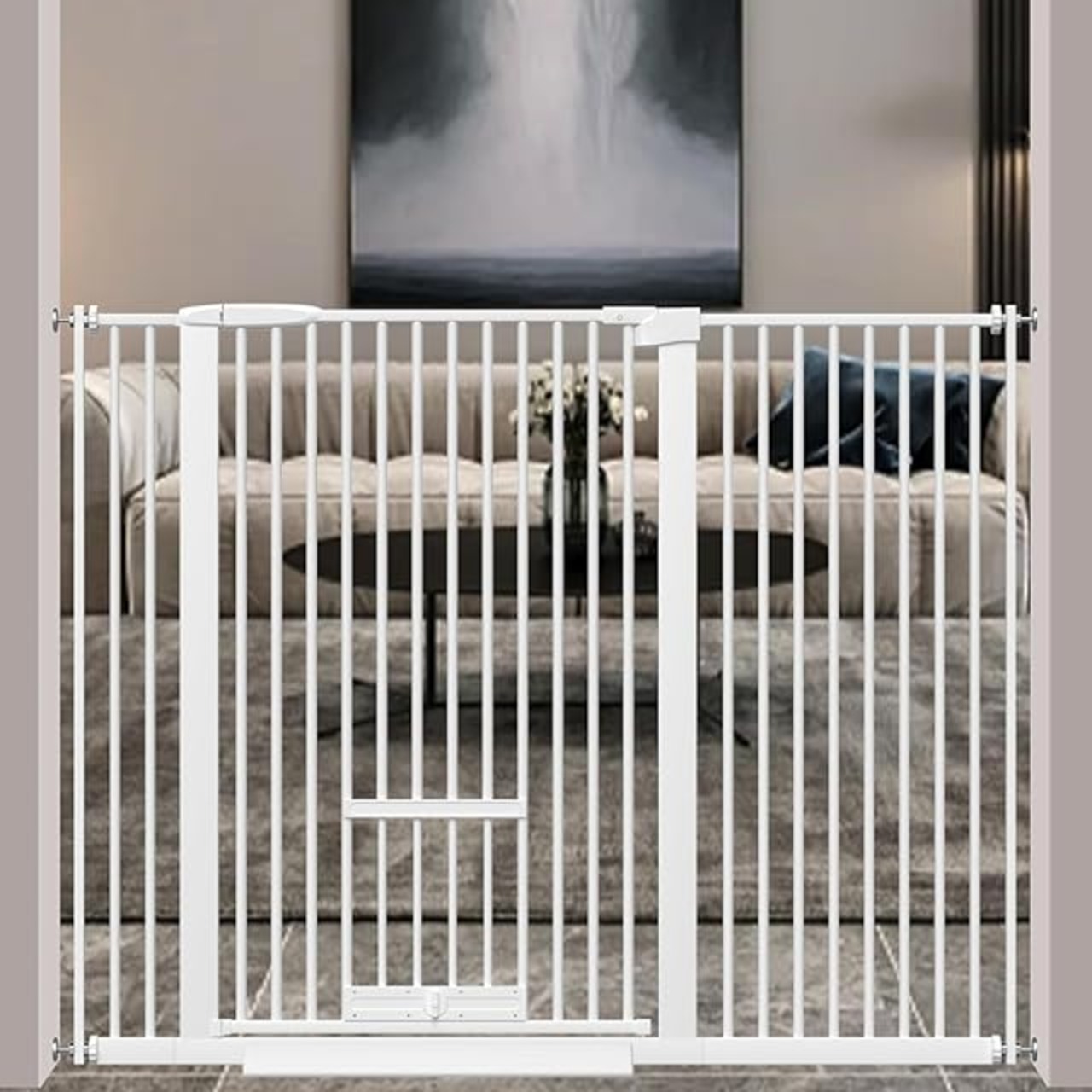 Seogva ペットゲート ベビーゲート 高さ103㎝ 間隔3 ㎝ ペットゲート ドア付き 猫すり抜け防止 飛び越え防止ゲート 猫ドア付きゲート 過密フレーム付き(ホワイト 117-136 cm) | ascend