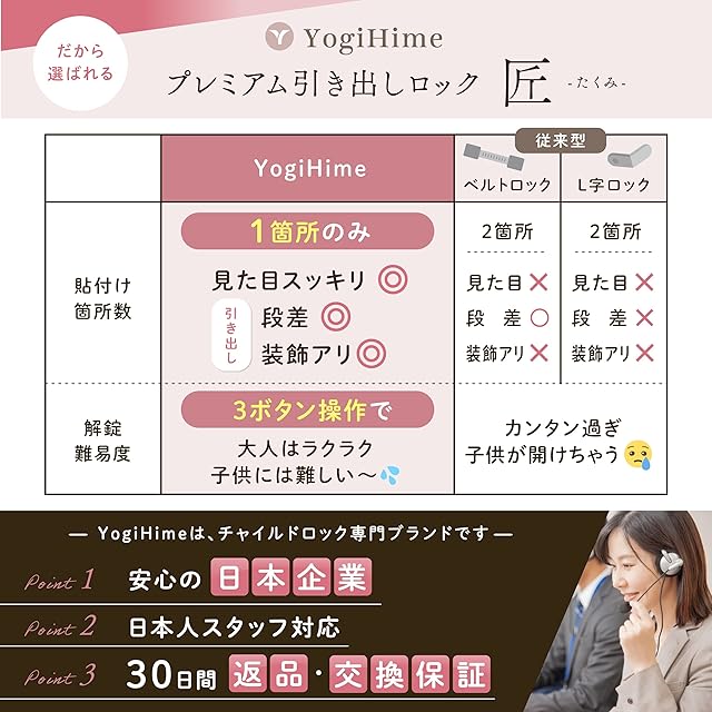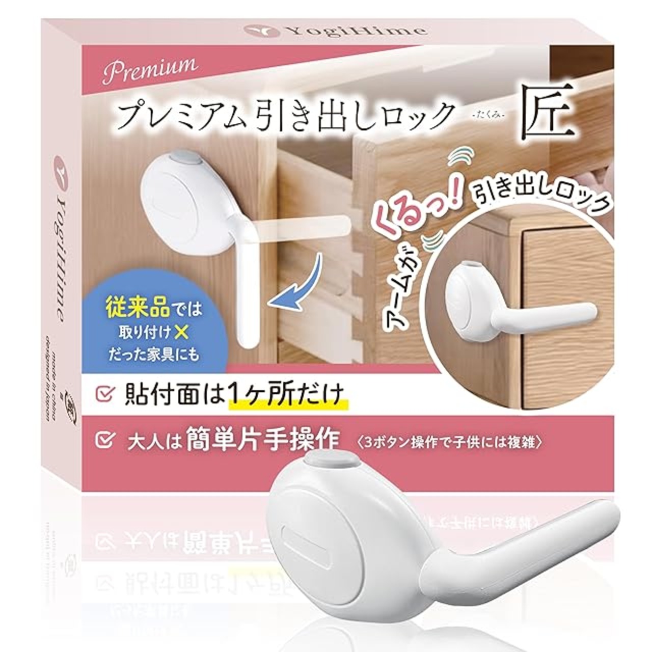 YogiHime プレミアム 引き出しロック 匠 『貼付面は1か所のみ』 『3ボタン操作で大人は簡単 子供には難しい』 『見た目スッキリ』 地震対策 日本のチャイルドロック専門店 (ホワイト1個) | ascend