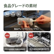 ブラシの毛は液体シリコン製で、スポンジやナイロン製のブラシに比べて汚れが付きにくく、清潔に保ちやすいのが特徴です。さらに、耐久性に優れ、長期間使用できるため、哺乳瓶洗い 旅行にも便利です。