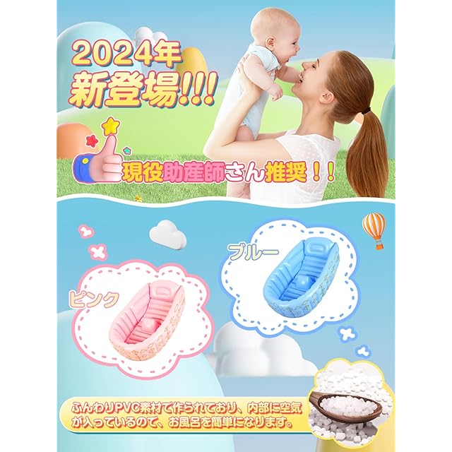 【PVC素材・ふんわり】ベビーバスの本体は柔らかいPVC素材を採用し、軽いだけでなく、耐腐食性・耐老化性・耐黄変性・耐温性・防水性にも優れています。寿命は普通の製品より長いです。漂白剤、蛍光剤などの有害物質を含まず、赤ちゃんの安全を保護します。