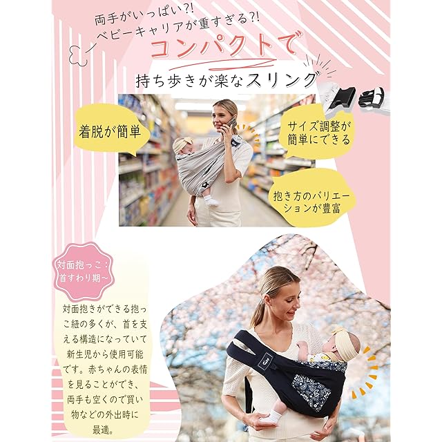 【多種抱き方 新生児だっこ紐】おんぶひもは生後1ヶ月から2歳まで新生児使えます。5通りの抱っこの仕方+授乳カバーとして使い分け、洗濯も乾燥も簡単にできます。