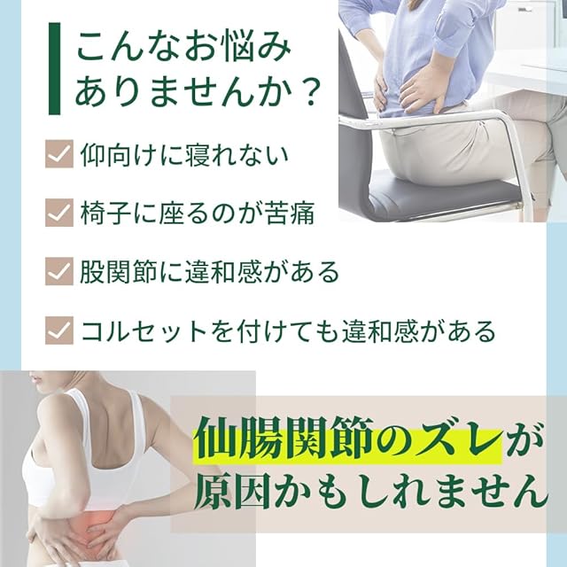 【整形外科医2名と共同開発】仙腸関節骨盤ベルトは前方部分から巻いて後方を締めることで、後ろにある後方仙腸靭帯を固定し、その動きを抑制できます。