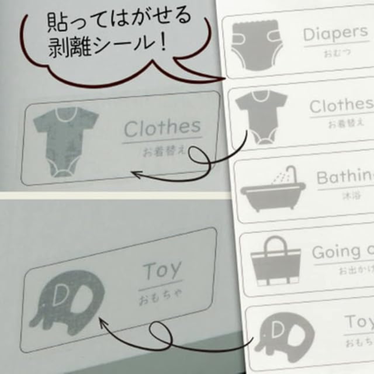 ③ひと目でわかる定位置管理&インデックスシールつき…剥離式のインデックスシールで家族だれでもわかる!戻せる!整理が続く!