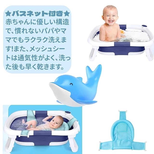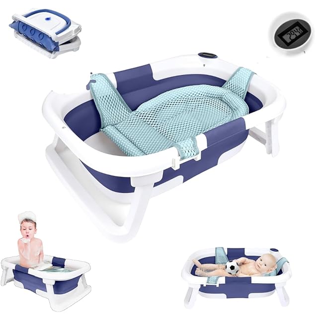 Little Bean ベビーバス 折りたたみ式 湯温計付き 赤ちゃん 子供用風呂 0~6歳 バスネット付き 収納容易 省スペース 赤ちゃんに優しいPP素材 滑り止め設計 お風呂 ベビー用浴槽 (ブルー) | ascend