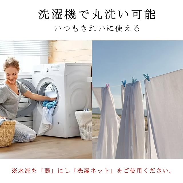 洗濯機で丸洗い:使用簡単で汚れたら、ご自宅の洗濯機で丸洗い、繰り返し使用可能です。いつでも清潔に使えます。水流を「弱」にし「洗濯ネット」をご使用ください。