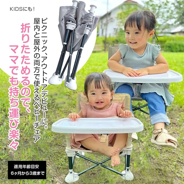 ●【屋内・屋外の両方で使用可能なベビーチェア】ピクニックやアウトドアの屋外での利用に、屋内で休憩・お遊び・食事の時の利用の椅子としても使用可能です。