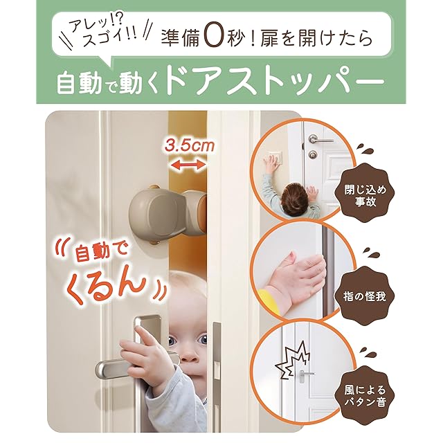 ✅【2023日本のチャイルドロック専門が開発】毎回設置するめんどうをなくすため開発。一度設置したら、準備0秒 ドアを開けたら、90度自動回転。35ミリの空間を作り、子供の指挟み防止します。手動でスイッチ操作する必要はありません。 これにより、大人が操作することなく、子供安全対策が可能です。また、換気にも有効です。日本の専門ブランドだからこそ!日本語で、安心サポート。30日間返金保証。